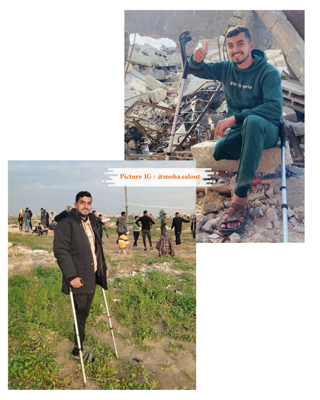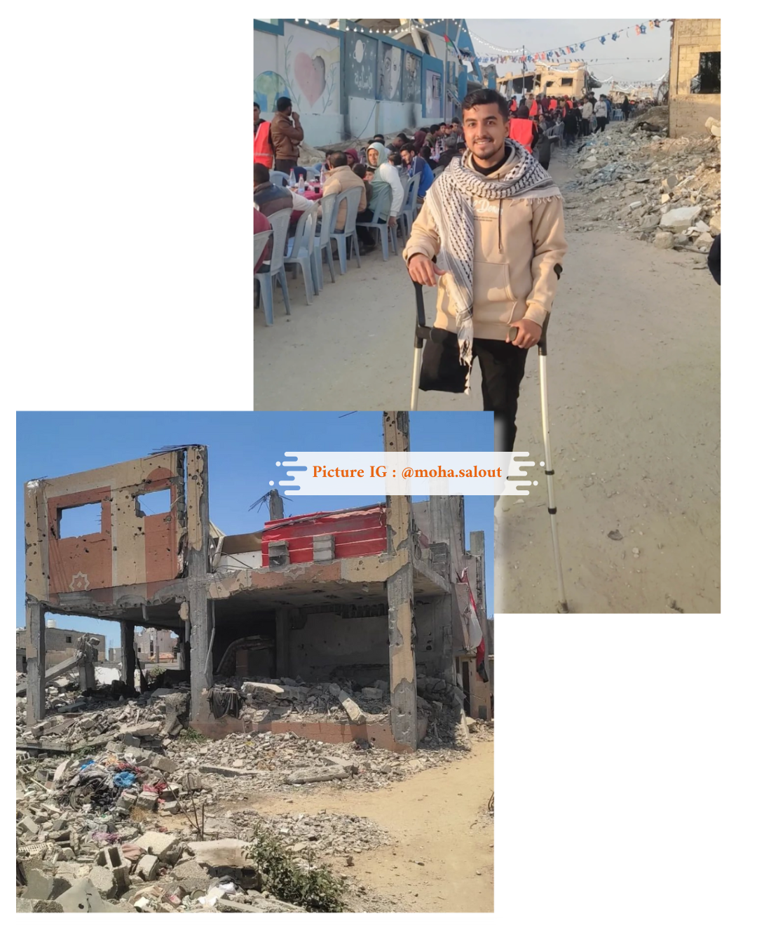 Salah satu saudara saya terluka ringan, sedangkan kaki kanan saya terkena serpihan bom isra***el dan membuatnya harus diamputasi sampai di atas lutut.